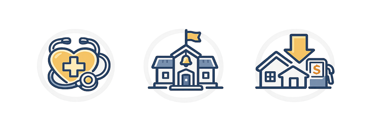 Committed to practical solutions that support healthcare, education, and affordability.